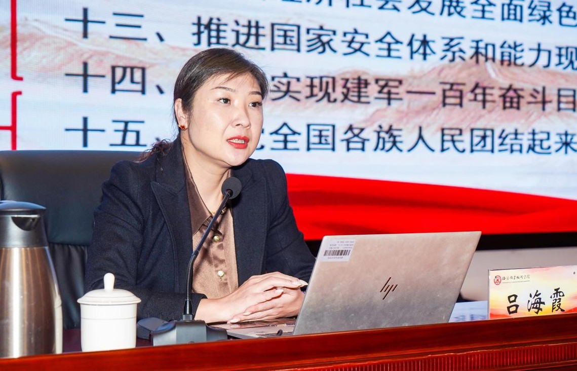吕海霞以“夯实基础 全面发力 开创中国式现代化建设新局面”为题,从“十五五”时期的历史方位、“十五五”规划建议的总体部署、“十五五”规划建议的重大任务三个方面深刻解读了党的二十届四中全会精神。吕海霞指出,“十五五”时期是基本实现社会主义现代化夯实基础、全面发力的关键时期,要巩固拓展优势、破除瓶颈制约、补强短板弱项,在激烈国际竞争中赢得战略主动,推动事关中国式现代化全局的战略任务取得重大突破,为基本实现社会主义现代化奠定更加坚实的基础。“十五五”时期经济社会发展,必须坚持马克思列宁主义、毛泽东思想、邓小平理论、“三个代表”重要思想、科学发展观,全面贯彻习近平新时代中国特色社会主义思想,深入贯彻党的二十大和二十届历次全会精神,围绕全面建成社会主义现代化强国、实现第二个百年奋斗目标,以中国式现代化全面推进中华民族伟大复兴,统筹推进“五位一体”总体布局,协调推进“四个全面”战略布局,统筹国内国际两个大局,完整准确全面贯彻新发展理念,加快构建新发展格局,坚持稳中求进工作总基调,坚持以经济建设为中心,以推动高质量发展为主题,以改革创新为根本动力,以满足人民日益增长的美好生活需要为根本目的,以全面从严治党为根本保障,推动经济实现质的有效提升和量的合理增长,推动人的全面发展、全体人民共同富裕迈出坚实步伐,确保基本实现社会主义现代化取得决定性进展。