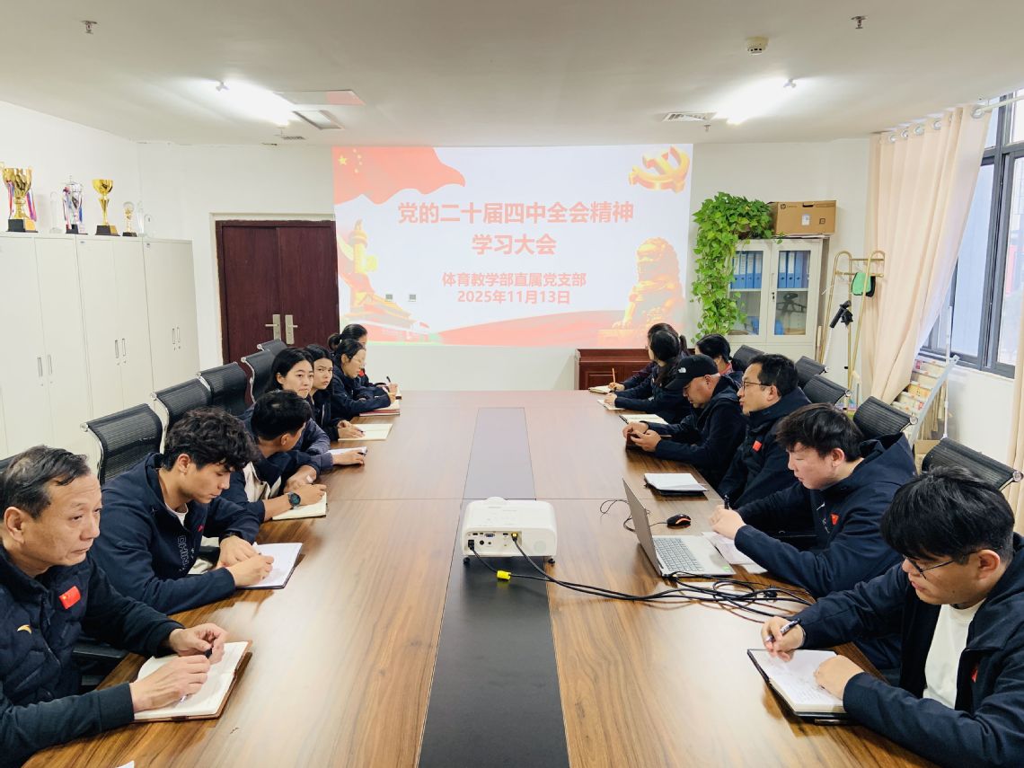 为深入学习贯彻习近平总书记在河南考察时的重要讲话精神和关于河南工作的重要论述,按照校党委工作要求,11月13日,体育教学部直属党支部组织全体教师在教研室开展党的二十届四中全会精神学习大会,会议由支部书记王莉主持。