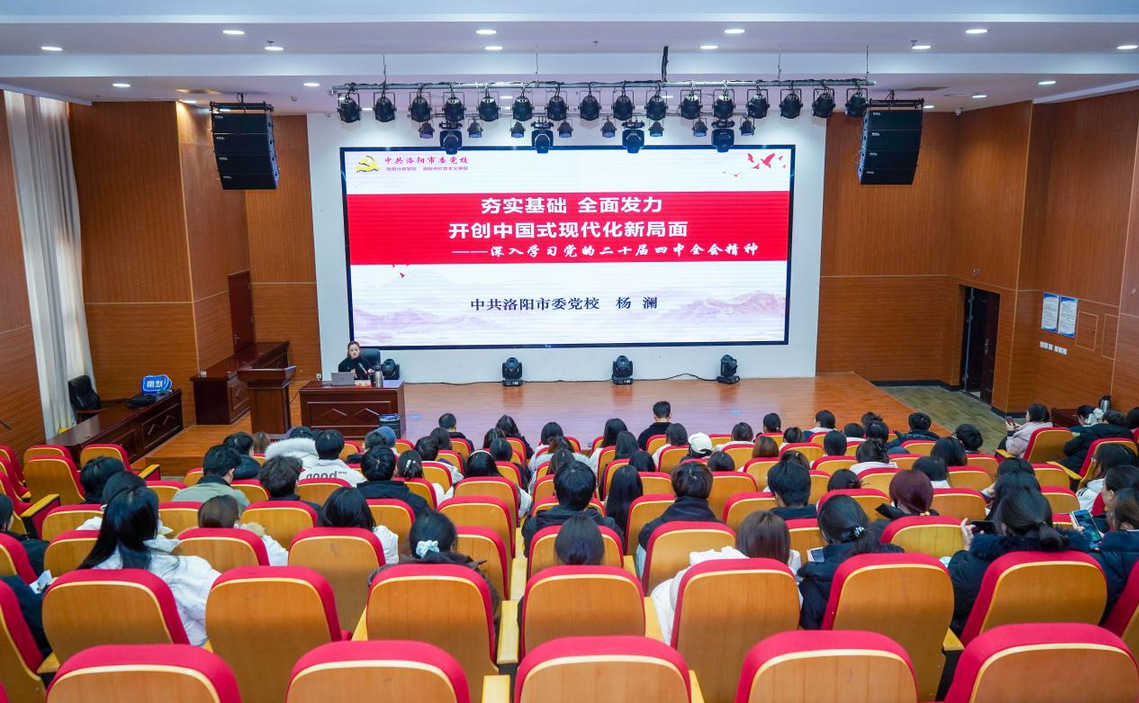 12月30日,我校举办党的二十届四中全会精神主题宣讲会。洛阳市青年宣讲团成员、洛阳市委党校党史党建教研部讲师杨澜老师应邀作主题宣讲。